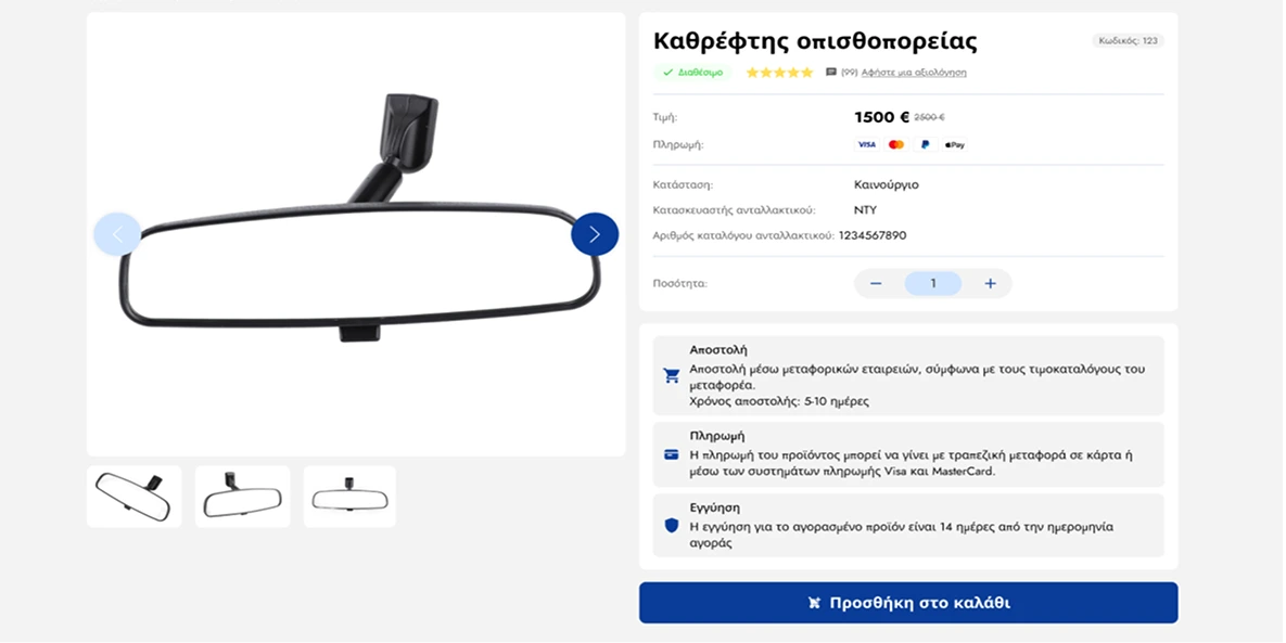 - Χρησιμοποιώντας την έξυπνη αναζήτηση με τον αριθμό ανταλλακτικού ή το όνομα